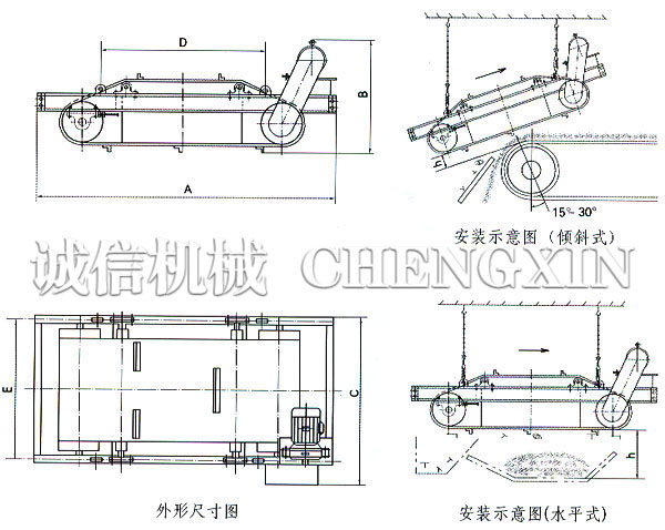 RCYD(C)系列自卸式永磁除鐵器外形尺寸及安裝示意圖
